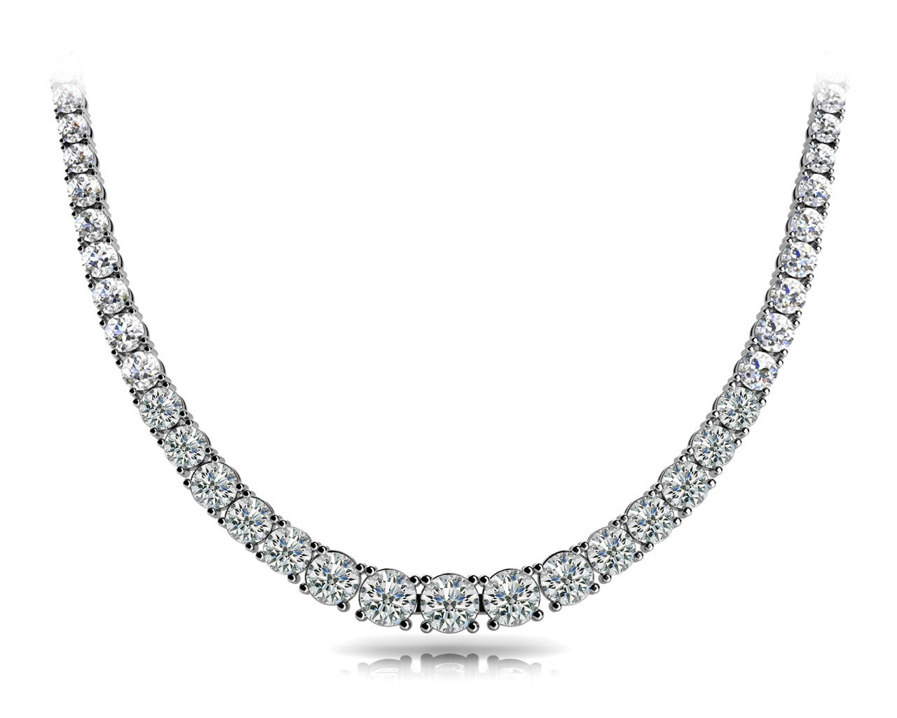 Sophisticated necklace featuring 80 round diamonds totaling 3.9 carats, with I1, H-I color grade stones in a graduated design.
