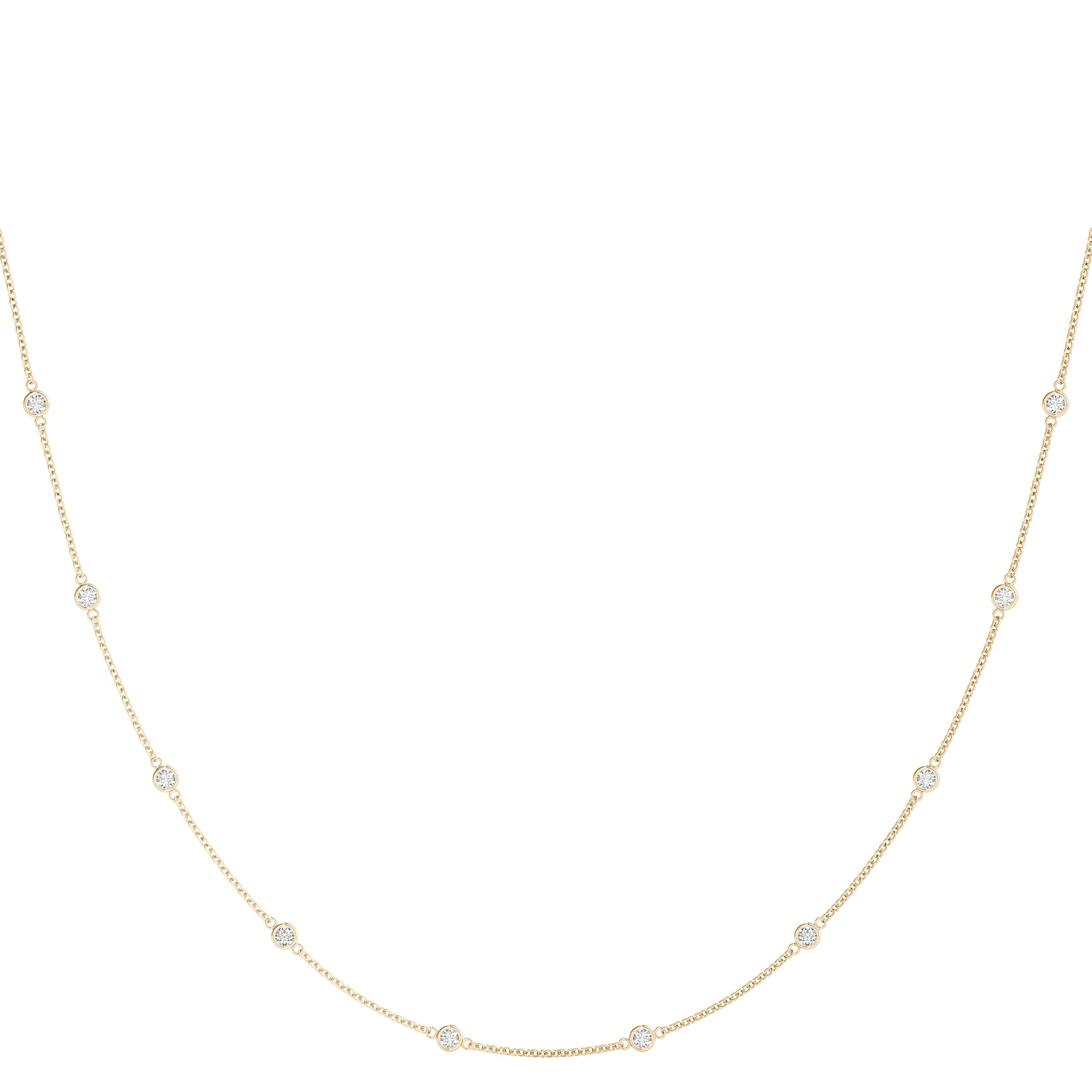 Refined 1.4mm chain necklace adorned with 10 round diamonds. Versatile gold options enhance this delicate, sparkling accessory.