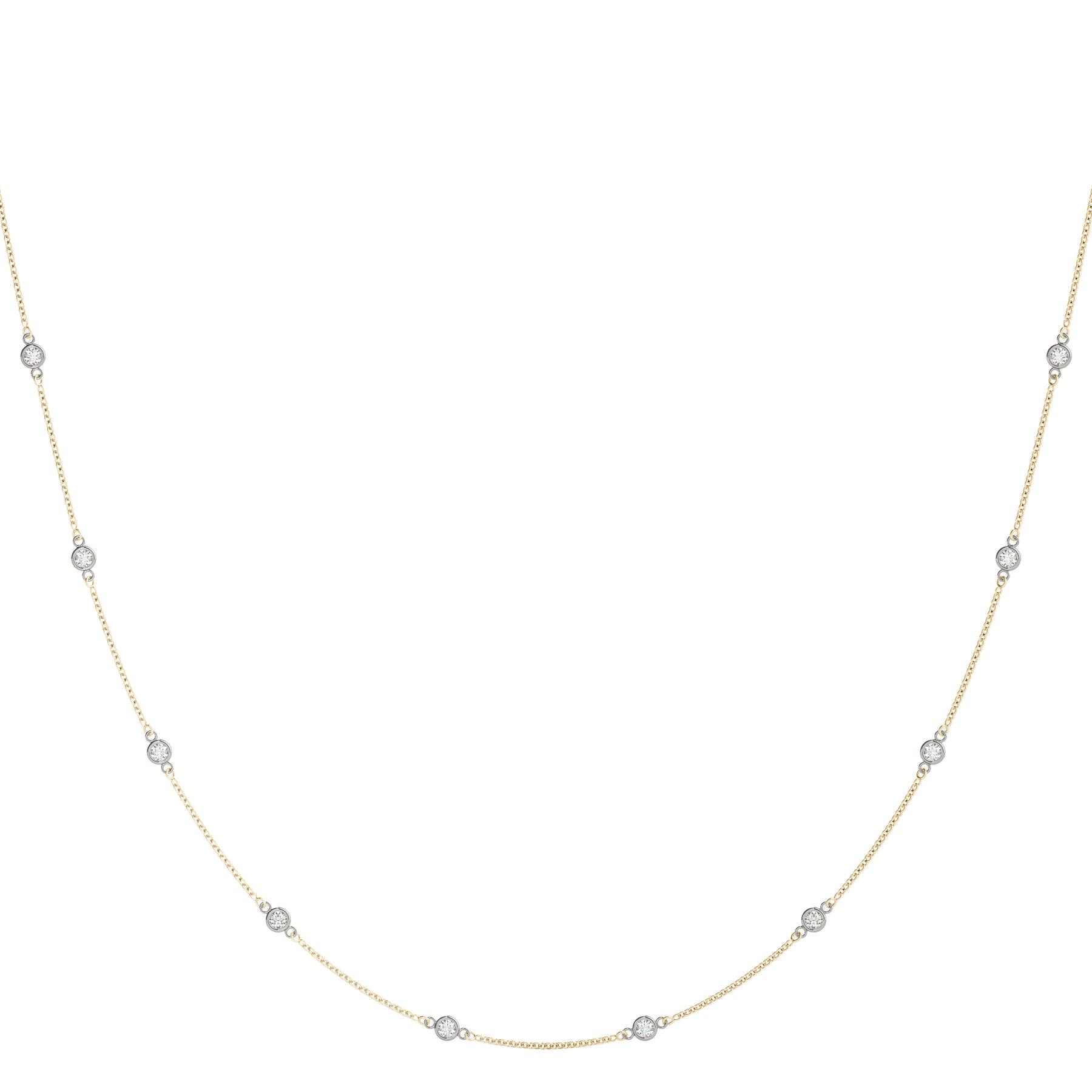 Delicate 1.1mm chain featuring 10 round diamonds, 0.1 carats each, in I1-H/I color grade. Available in multiple gold options.