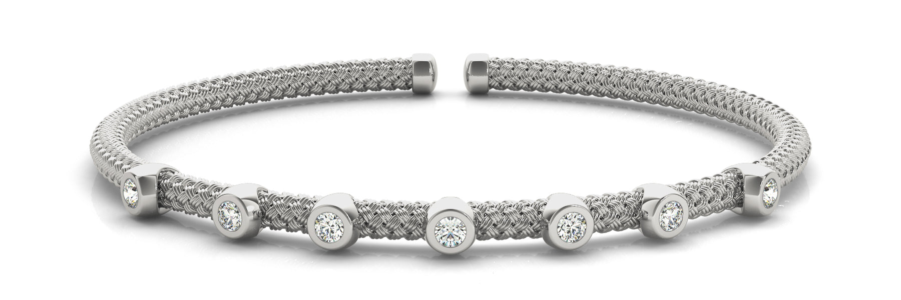 Precision-crafted Italian bangle adorned with 7 round diamonds, delivering refined elegance in multiple gold options.