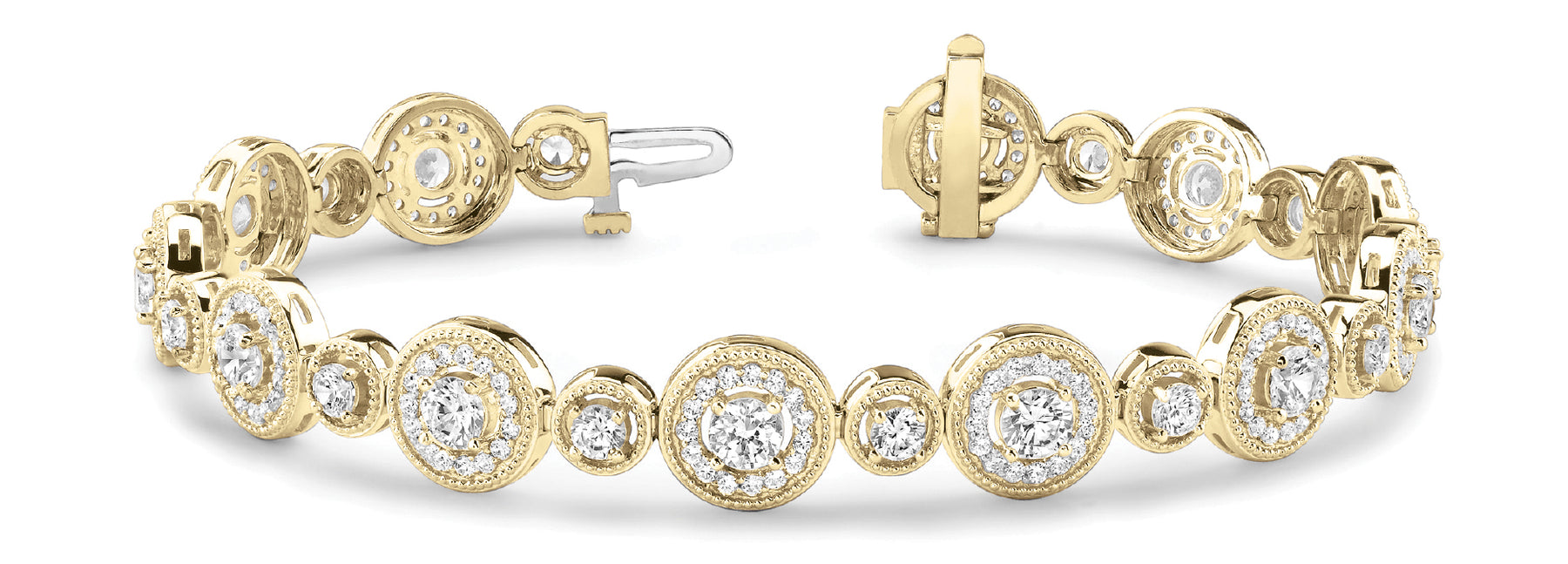 Luxurious vintage bracelet adorned with 192 round diamonds in varying sizes, offering subtle sparkle and classic design.